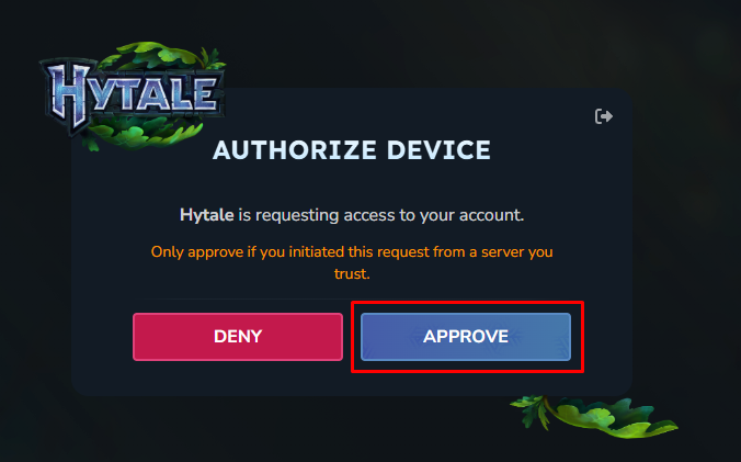 6. След като отворите линка трябва да сте се логнали с Вашия акаунт в hytale.com с този браузър и да цъкнете бутон Approve