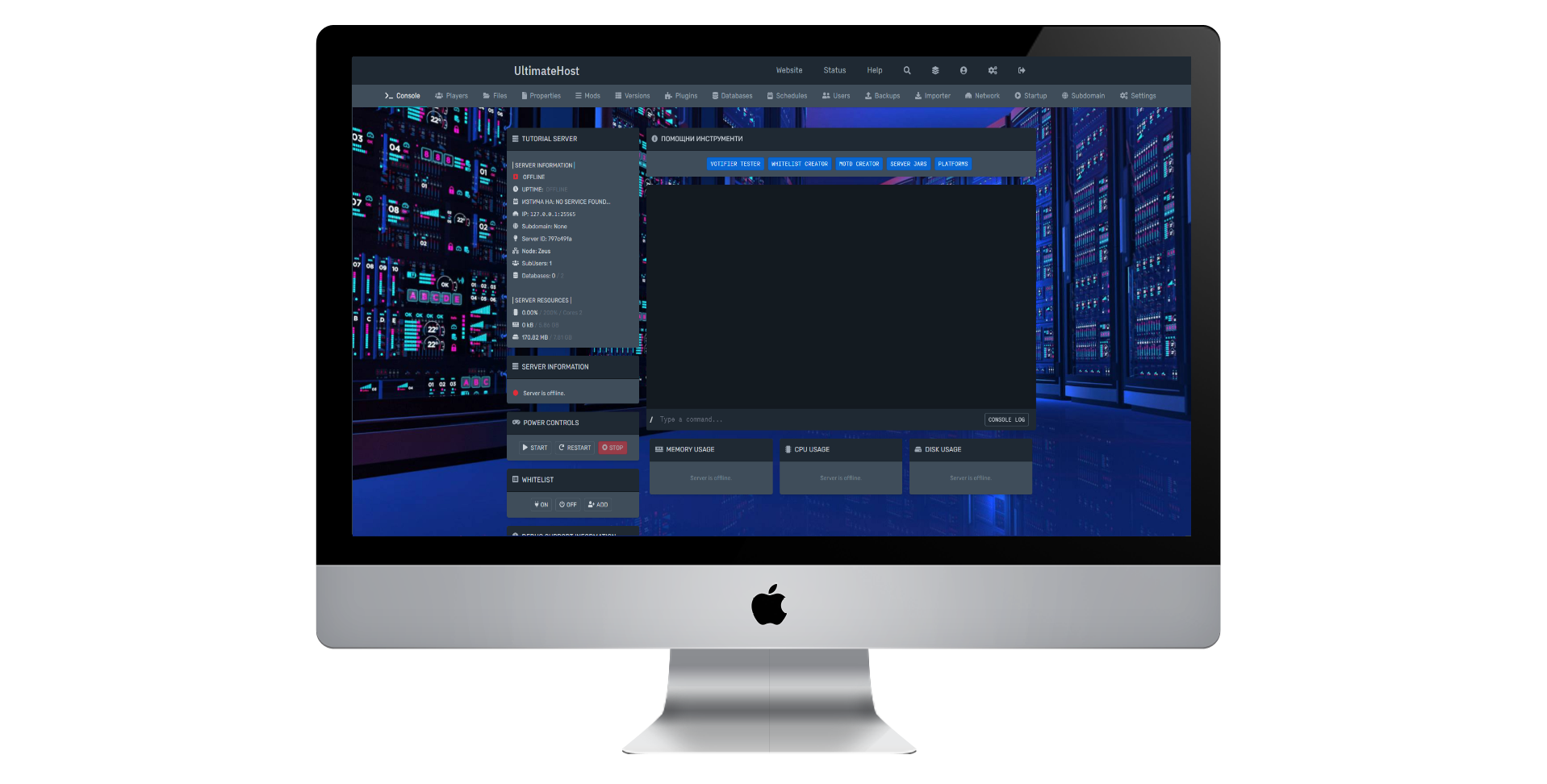 Използваме изцяло персонализиран от нас Pterodactyl панел, който Ви дава възможност за контрол над сървъра Ви както набор от много инструменти за настройка и управление на услугата Ви.